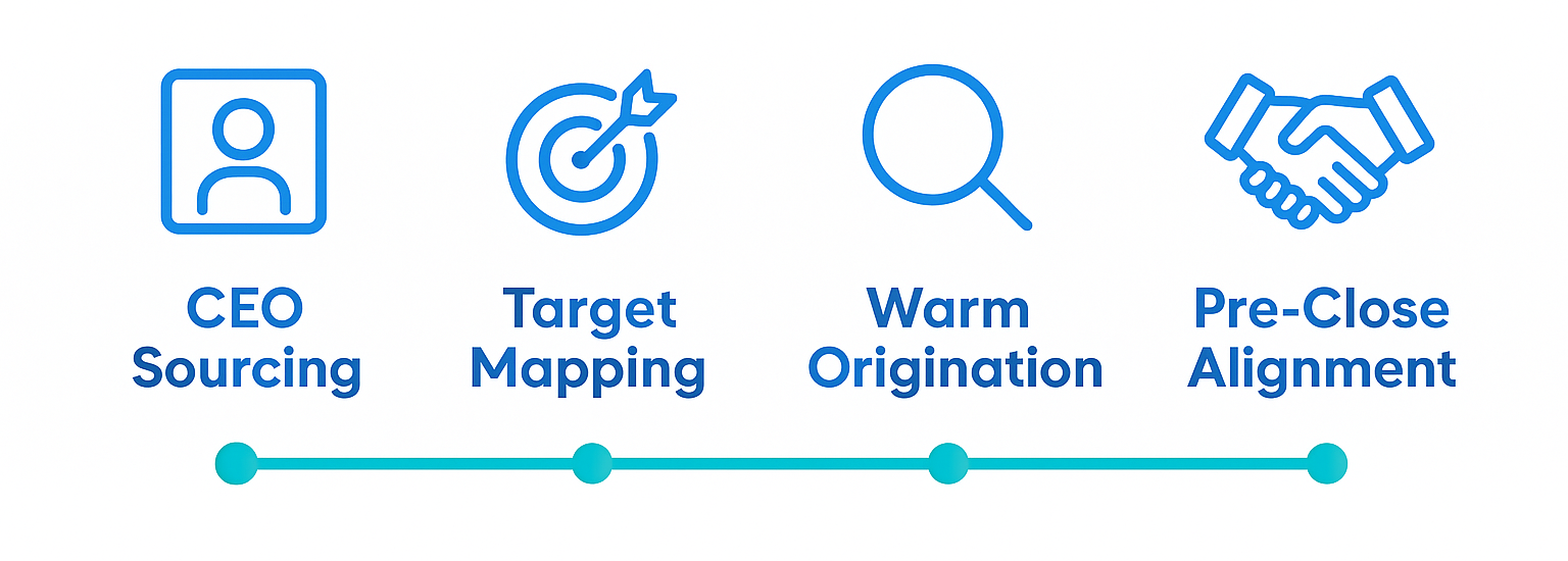 Our model strengthens business development efforts by aligning top executive talent with high-potential targets early in the process. The result: enhanced deal flow, sharper diligence, and immediate post-close traction—with leadership already in place.